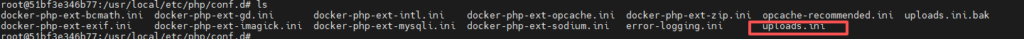 3.3 进入/usr/local/etc/php/conf.d/路径下创建uploads.ini文件